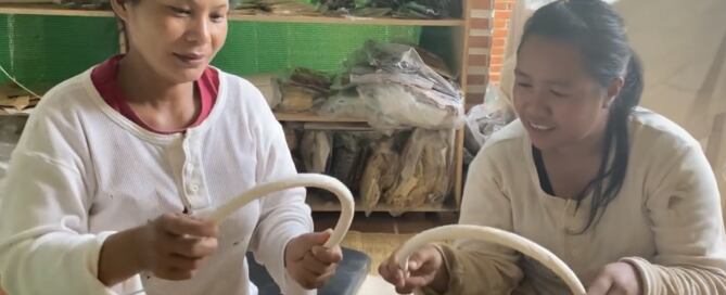 ※ The image shows the process of natural dyeing and a prototype under trial and error. Before this dyeing, I had dyed without pre-treating with soy milk, which resulted in a somewhat blurred color. The staff we asked to do the dyeing were students from a vocational training NGO who were learning skills to become independent after graduating from an orphanage at the age of 15, and they had never dyed cotton before.